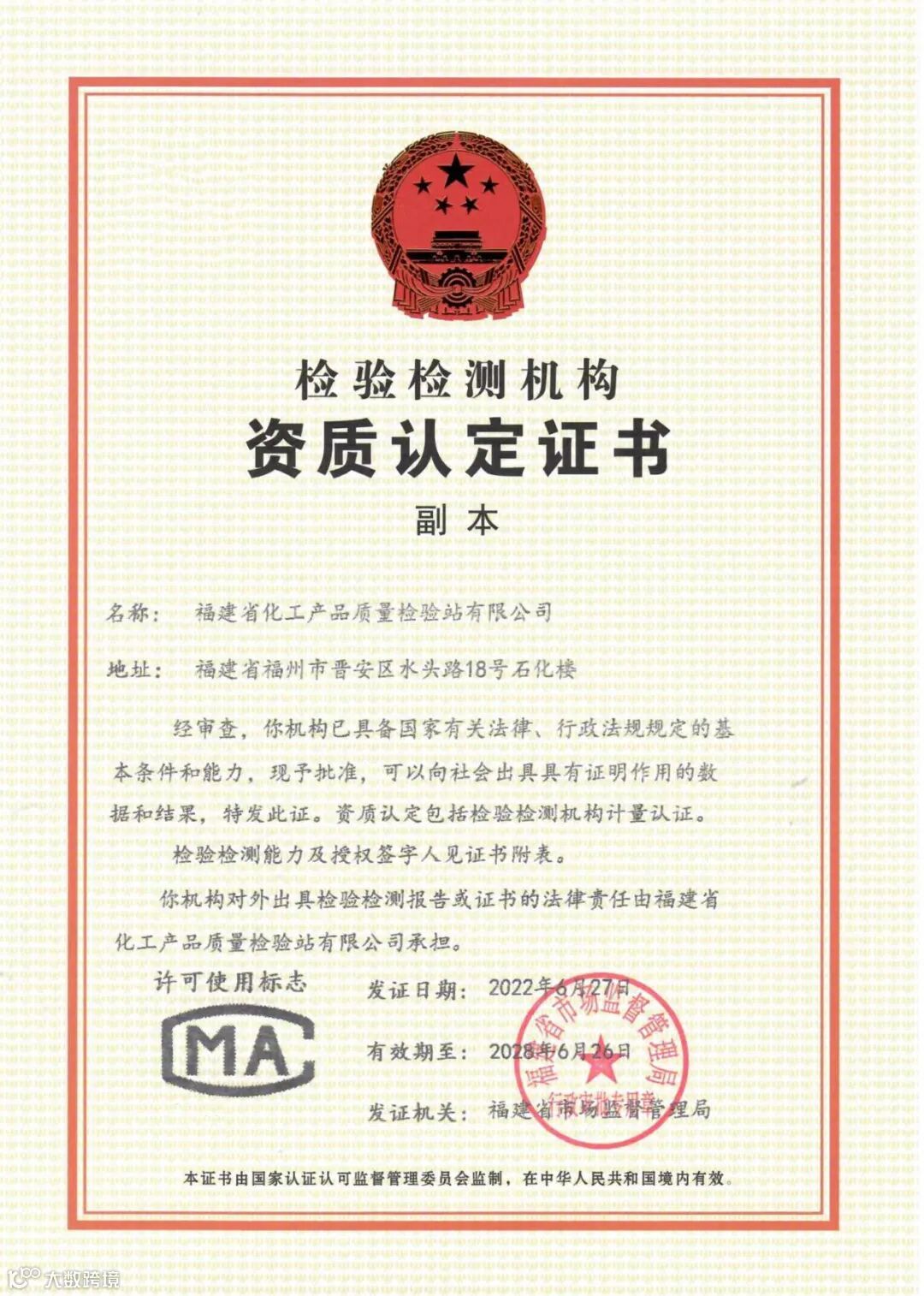 6月27日,福建省化工产品质量检验站有限公司通过福建省市场监督管理局认证,顺利获得检验检测机构资质。此次资质认证的范围在原有基础上新增环境监测项目400余项,如大气环境、水环境、土壤环境检测项目等;产品检测项目则在原有的农药、化肥检测项目基础上新增卫生杀虫剂等检测项目。