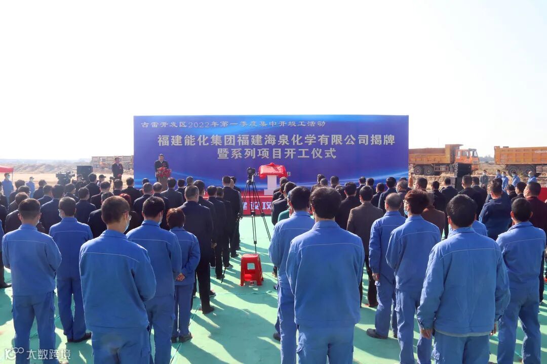 1月3日,新年伊始,福建能化集团福建海泉化学有限公司揭牌暨系列项目开工仪式在漳州古雷石化基地隆重举行。能化集团党委副书记、副董事长、总经理徐建平,漳州市市长王进足,市委常委、常务副市长侯为东,市委常委、市政府党组成员、古雷开发区党工委书记胡栋良,古雷开发区党工委副书记、管委会主任李翀,福建海泉化学有限公司董事长陈庄善,漳州市市直有关单位、古雷开发区有关单位、能化集团石化产业部和相关企业负责人等参加开工仪式。