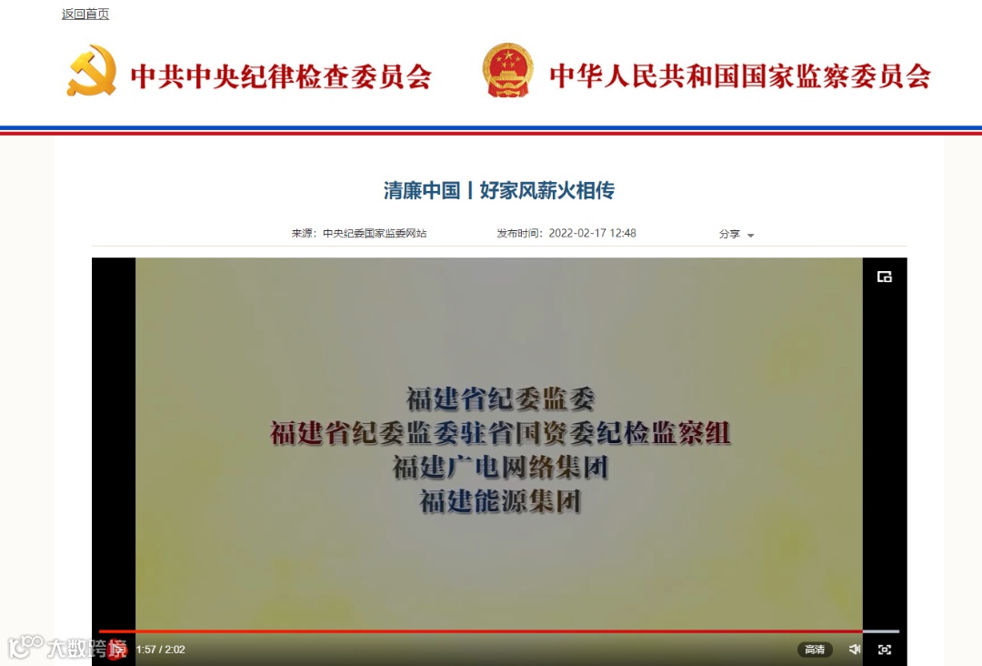导读:由福建省纪委监委福建省纪委监委驻省国资委纪检监察组福建广电网络集团福建能源集团联合出品的微视频《清廉中国丨好