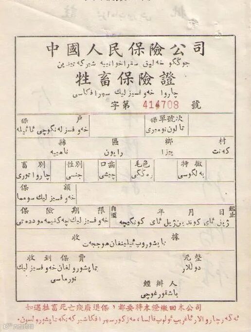 上世纪50年代牲畜保险说明