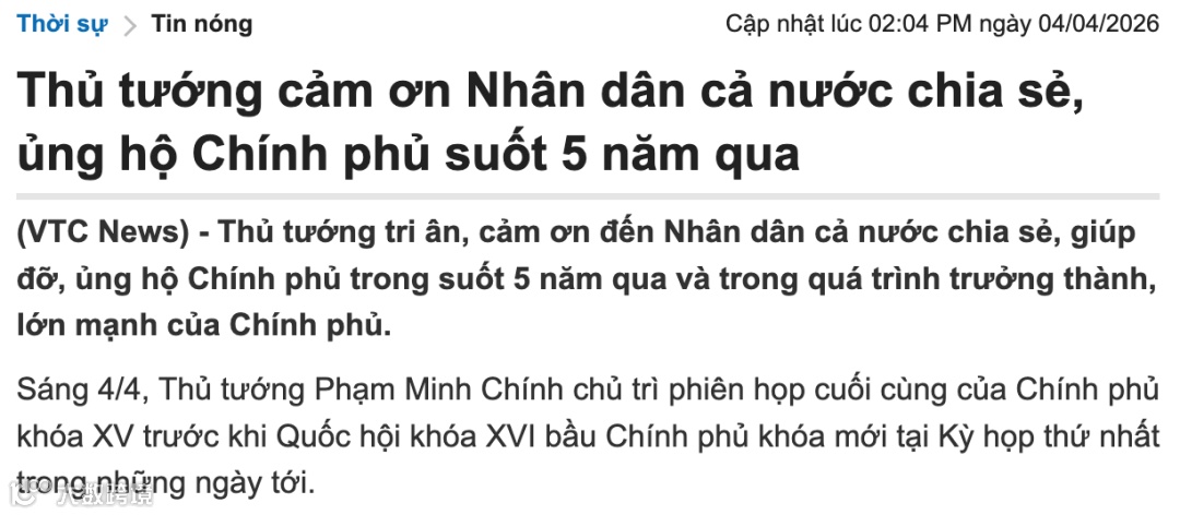 据越媒报道,2026年4月4日清晨,范明政主持了本届政府(第十五届)任期内的最后一次例行会议。在几天后,新的国会(第十六届)将召开第一次会议,并选举产生新一届政府。