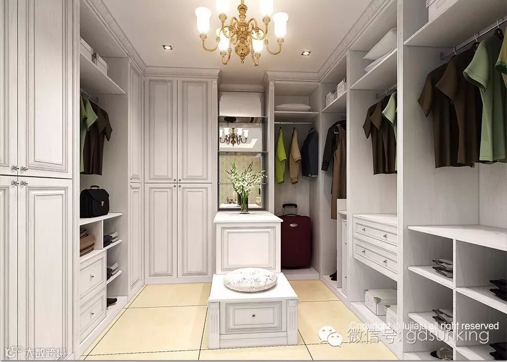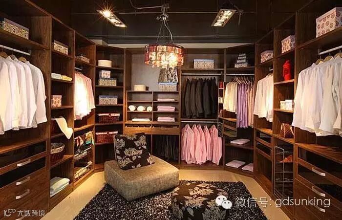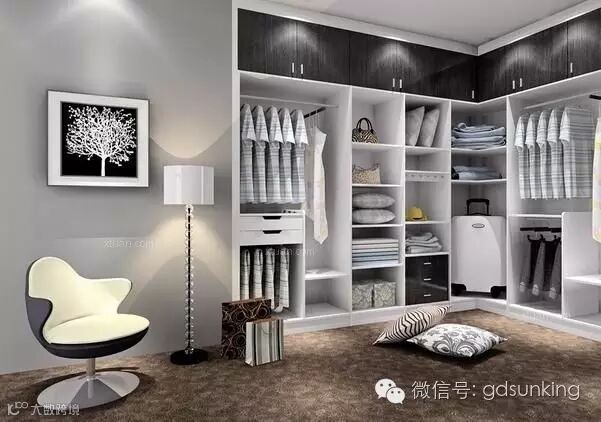 3.需注意的是,对于独立的衣帽间而言,设计时,要合理安排灯光(自然光源为佳,可以使使衣服的颜色最接近正常)、色调等元素,使之既融入室内整体风格,又保持自己独特的情调。