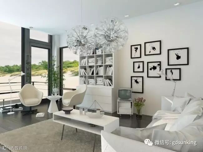这是个阳光明媚的午后,与落地窗内的情景浪漫的邂逅了,纯白色的沙发,椅子,干净纯粹与光融合的恰到好处。