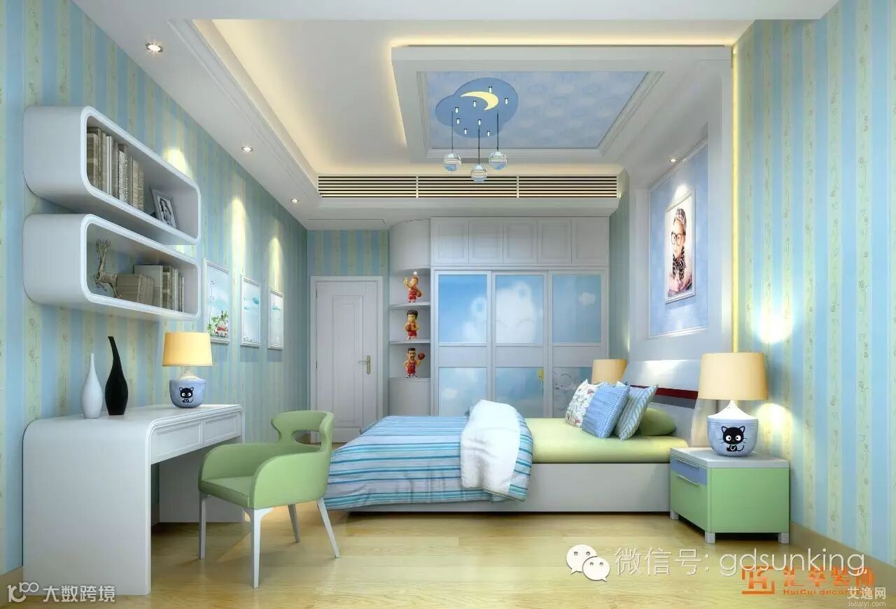 儿童房必然要打造成属于儿童天真活泼的环境。决定用色彩去营造活力的氛围,让儿童感觉到这是属于自己的世界!