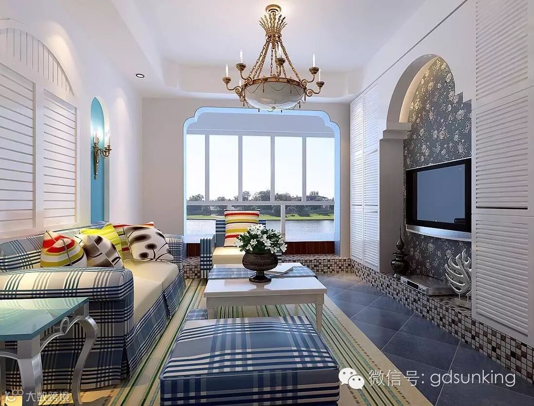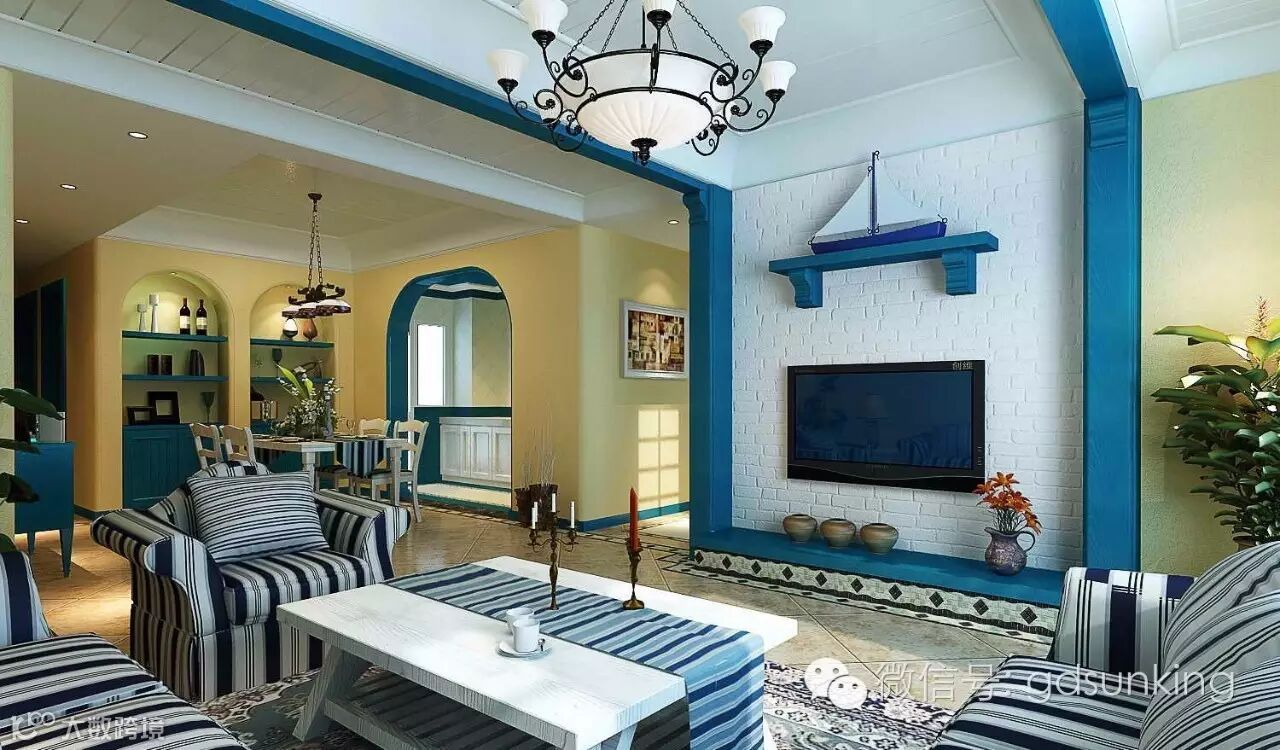 源自于希腊和爱琴海沿岸村庄的"蓝白"色调,是地中海风格建筑给人最鲜明的印象。说到地中海风格,很多人脑海中的第一反应就是阳光、沙滩、碧海、云天、清风、夕照这样一幅梦想中画面。锻铁物件、小盆栽、木质的桌、椅,都是地中海风不可或缺的元素。