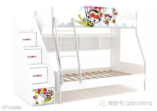 机灵古怪的孙悟空卡通图案为这款儿童床的主要灵感,省空间高低床设计,板面鲜艳的图案,必定深得孩子的欢心。此款儿童床板材结实,可承重能力强,优质实木排骨架透气散热。
