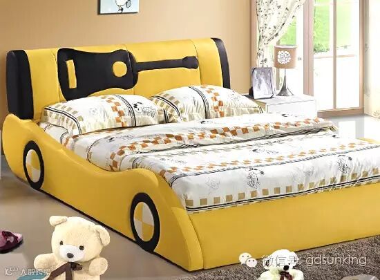 亮黄色看上去十分活泼,汽车造型绝对是男孩子的最爱,这款儿童床适合用在男孩子的房间。床头靠背框架采用实木骨架,夹板封闭,坚固耐用,内部填充高密度海棉,柔软舒适。此外,床边框架采用高密度中纤板制作而成,经久耐用,不易变形。