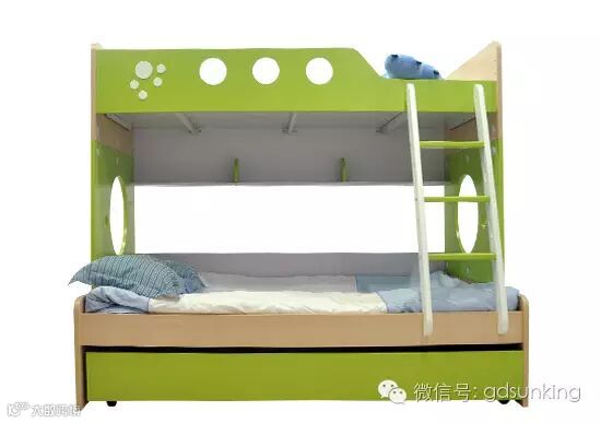 此款儿童床整体为鲜明的果绿色,颜色贴近自然,配以大小不一的镂空圆圈图案,充满活力。此款儿童床底部可加单抽子床,放下床垫就可以多一张床,平常也可以用作抽屉使用,最大限度地利用空间。