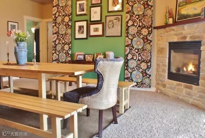 墙面色彩的使用非常大胆,图案形状颜色丰富多彩且抽象,整个空间装饰个性十足。