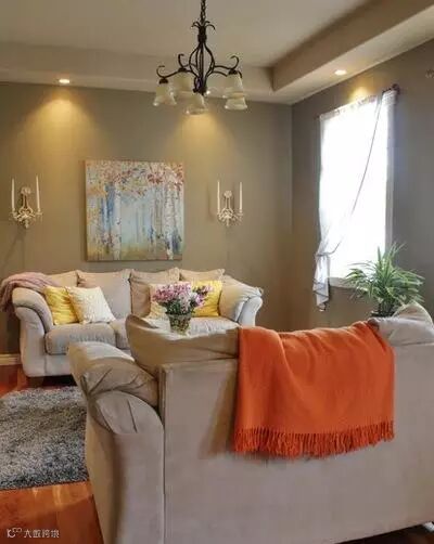 暖色调让客厅更显温馨,通风轻薄的白色窗帘取代厚重的窗帘装饰,让空间更轻盈。