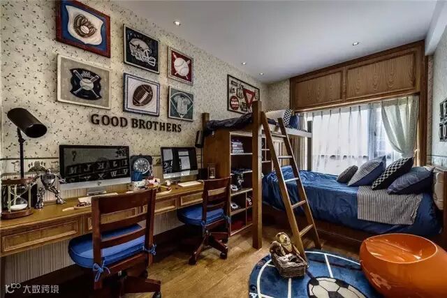 :决定要二胎了?那么这套美式儿童房的设计或能深得你心,两个孩子在自己的小