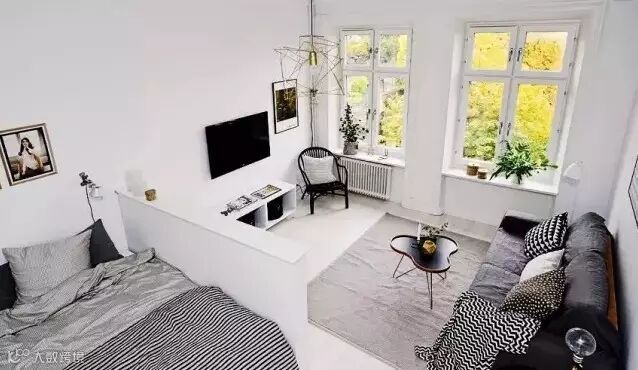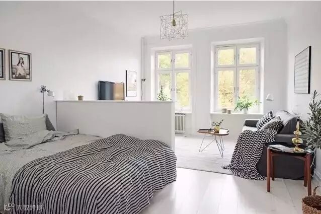 小户型最重要是收纳,把一个独立空间划分不同功能区。整体色调简约清新为主。
