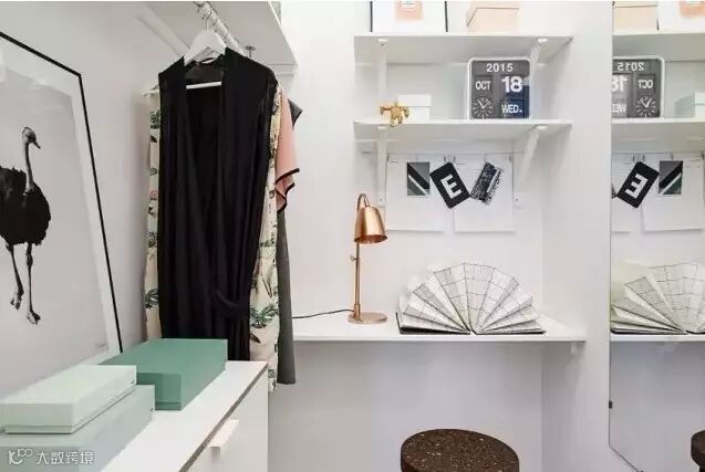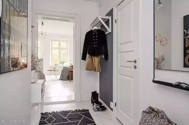 大面的镜子方便整理仪容,将墙面粉刷成颇具格调的灰色,添置一款简易的衣帽架,让小角落变身衣帽间。