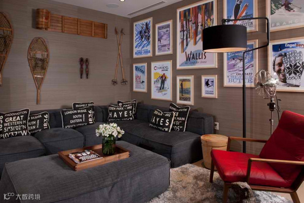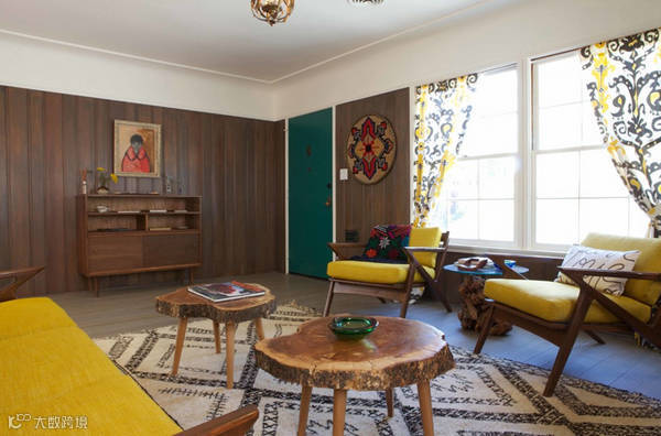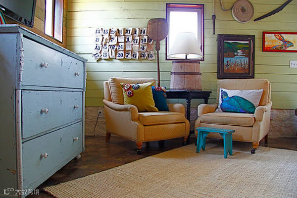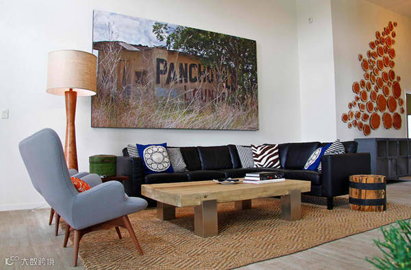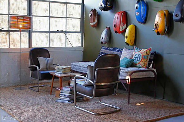 1 | D’ette Cole 起居室:对于那些热爱摩托车的人儿来说,这有意思的墙壁艺术能让他们大为惊叹!一张优质厚实的地毯让这个复古客厅的更有层次感。设计联