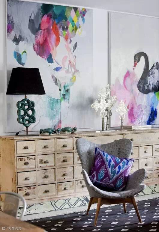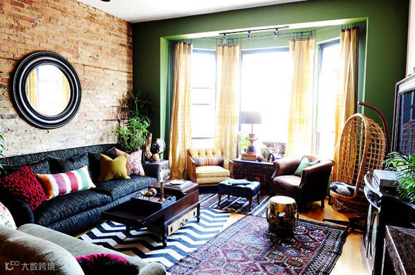 3 | 复古的地毯,相同色系的挂画以及俏皮的墙壁挂饰,这就是现代设计与原始材料的完美融合!