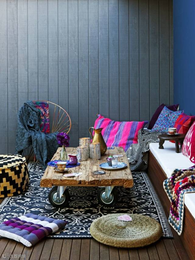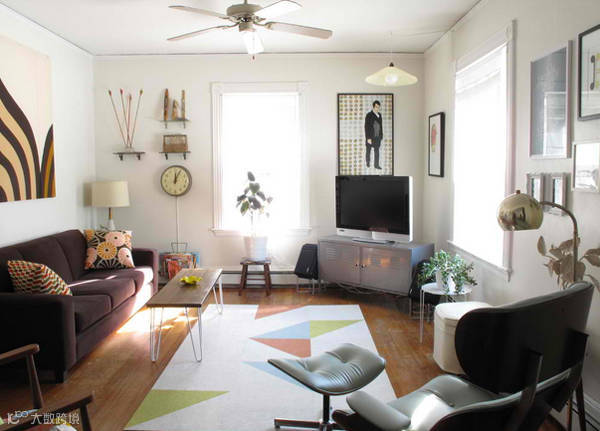 4 | 创造性的选择一张几何图案的布料地毯,同样可以打造复古风格。