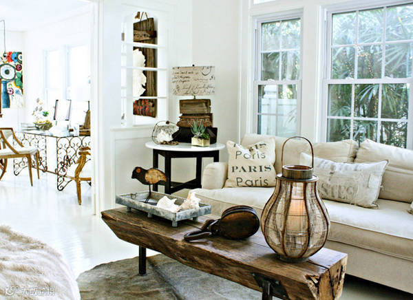 15 | 华丽的客厅里面放上桌灯,原木茶几等复古单品,立马让整个空间变得时髦起来。