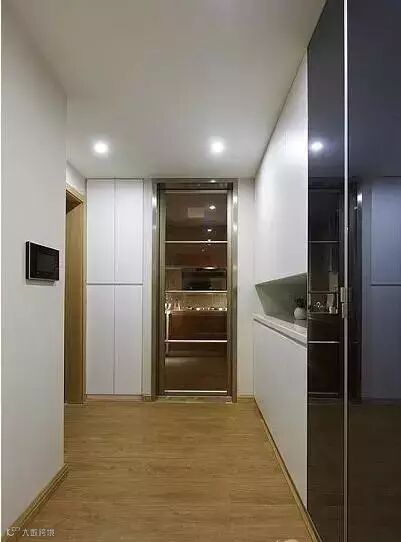 玄关走廊比较长,所以做成了储物区,回到家,衣服鞋帽都能放到柜子里,省去了天天整理的麻烦。