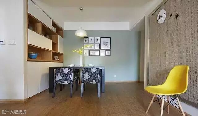 餐厅背景墙用减压蓝带来清雅的气质,瞬间提升清凉感,在这样的餐厅里就餐,还怕没有好胃口吗?