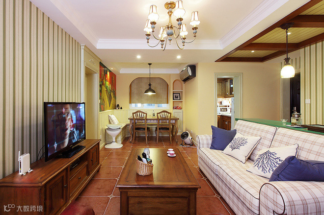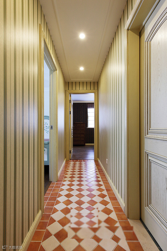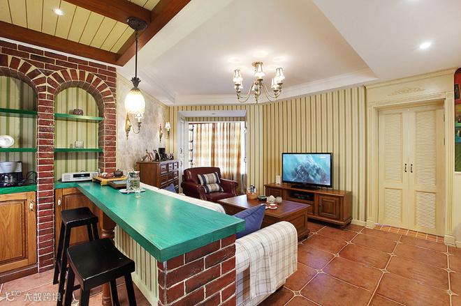 美式与中式风格搭配,色彩以中性亲木色系为大面积主色调,高雅温馨,营造出一让业主能放松休息的家。房屋修造为砖混结构,不能对大面积改动,只有适当开凿窗洞及门洞对房屋改造,尤其是入户门厅改造引入自然光。以自然色调为主,大面土褐色兼有木色相衬。
