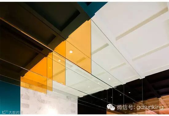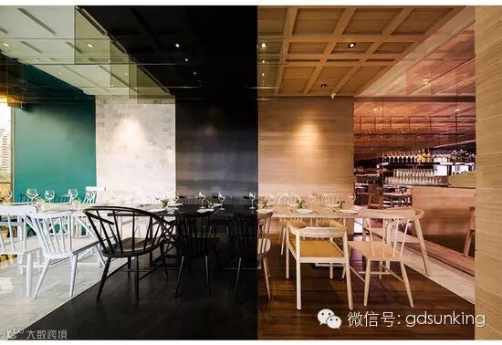 特定区域的天花板、墙面、桌椅都用同种颜色