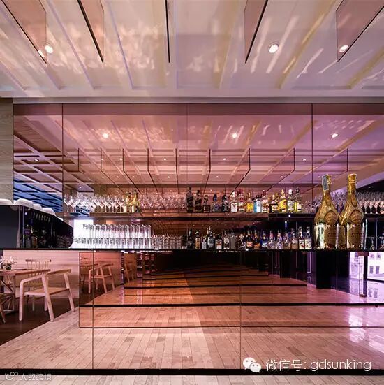 Hashme 位于曼谷通罗区(Thonglor)一座商场的顶层,透过玻璃窗,能以全景视野看到这个活跃商圈的街景。在室内装潢上,操刀设计的泰国建筑事务所 Onion 选择了五种“滤镜”有序地排布在餐厅内,把整个空间营造成被滤镜覆盖一般。三维的空间看起来甚至变得扁平了。