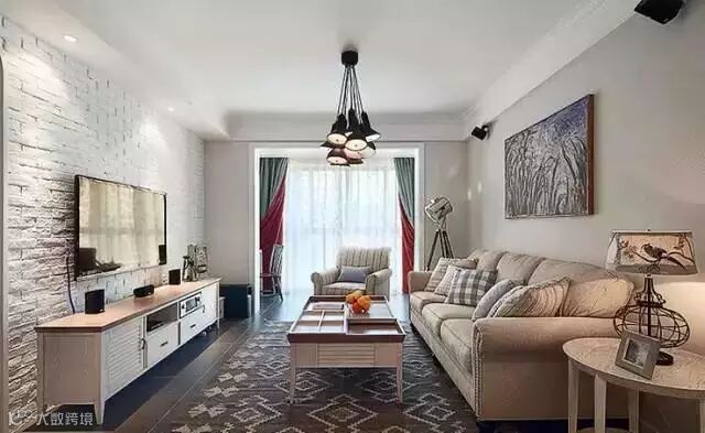 美式乡村风格以“享受”为最高原则。此方案摒弃了繁琐和奢华,强调“回归自然”。厚重的布艺沙发,简洁的木质茶几,简单的方形餐桌,都使整个空间更加舒适和自由。