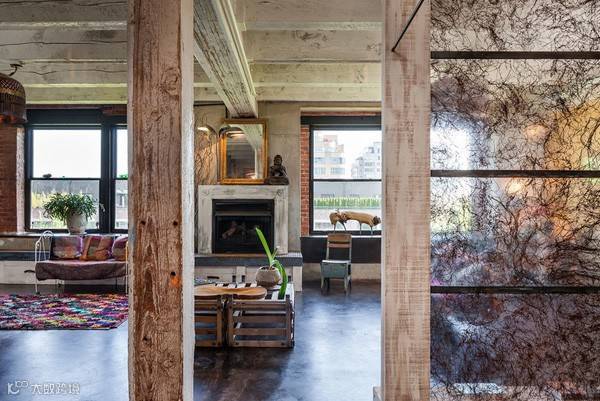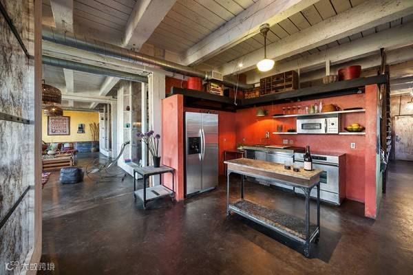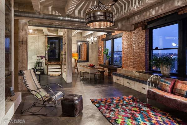 因为前身是工厂,也没有承重墙,设计师现在用暴露的横梁来划分不同的区域,在改造过程中混凝土和砖墙都被暴露,这也是工业风格的魅力所在。