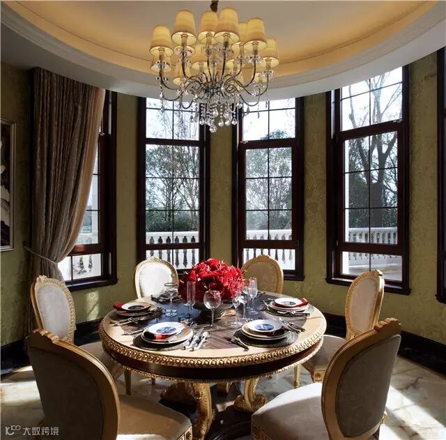 室内空间设计体现设计师对于法式风格美感的独特表述,加上新颖独特的材质运用,整个空间的设计都透露出低调奢华的高品位气息。起居室玻璃金属质感红酒架延伸整体空间开阔视野,沉稳大气法式家具搭配精致带有异域风情艺术品点缀,营造出富有西方文化的品味与格调,凸显主人追求高雅的生活品质和文化素养,深厚的历史文化内涵凸显其中。