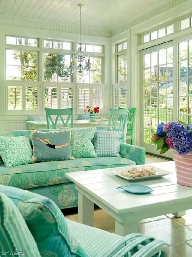 看这样的阳光房,这家人一定有一个满是藤蔓花园墙。清新田园风不一定要有一座花园,通过家居里的设计照样可以很清新。比如说家里摆置个绿色植被……