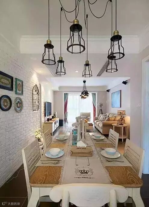 ▲ 餐厅背景同样是客厅电视墙延续过来的文化砖