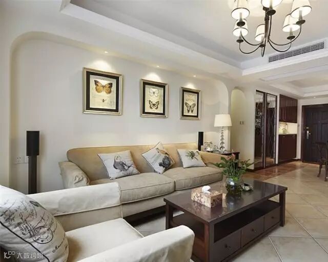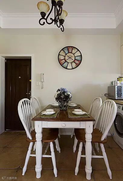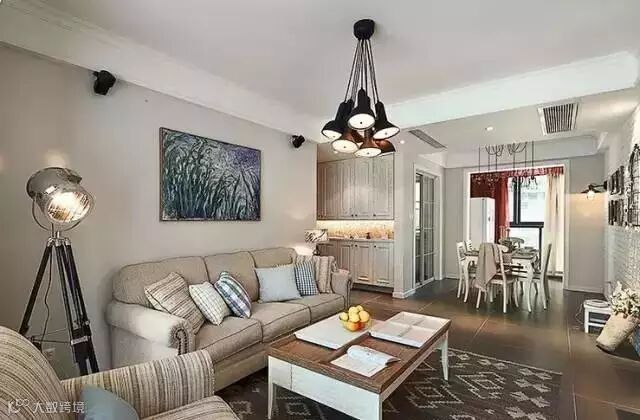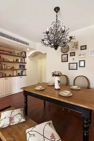 美式乡村风格以“享受”为最高原则。此方案摒弃了繁琐和奢华,强调“回归自然”。厚重的布艺沙发,简洁的木质茶几,简单的方形餐桌,都使整个空间更加舒适和自由。