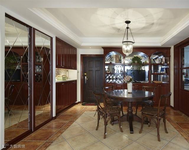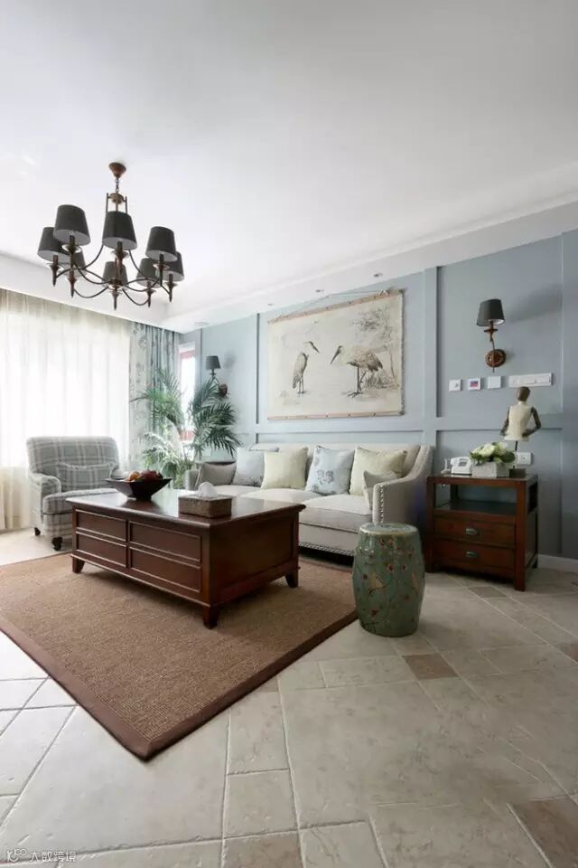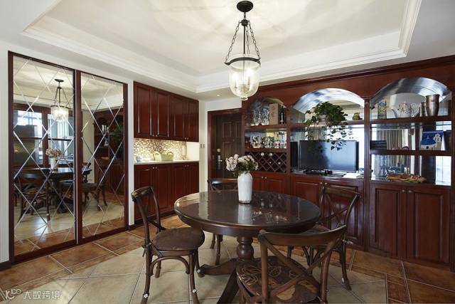 美式乡村风格的室内设计正体现了这一特点,同时也体现了业主休闲自然的生活模式;休闲自然的氛围,材料自然的质感,复合色彩的搭配与运用,丰富的陈设都是美式乡村风格的具体表现。