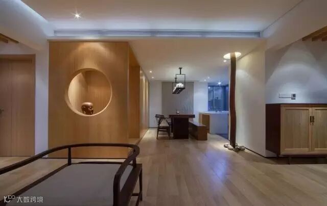 本案的主题突显寂静空灵的日式禅意空间,它让人感受到了一次美的洗礼-空明、澄净、洗心。传承了日本室内设计深谙禅宗之理,将禅宗的简素与自然,孤傲与幽玄,脱俗与寂静的美学特性表现出来,宛如一首凝练的诗,简素之美的物体,用木料、石头、竹子、素面的油漆、空洞的实木花格,原木的素色和原木的清晰纹理等大量天然之材,透射出朴素,内敛的气息,使得整个空间展现出一种禅宗的空灵意境。