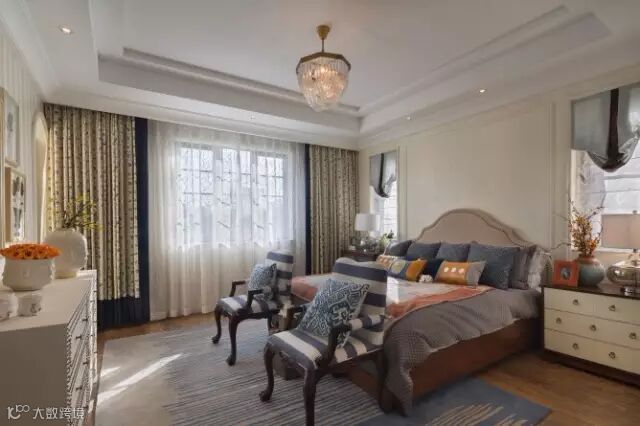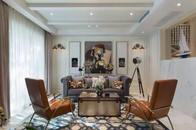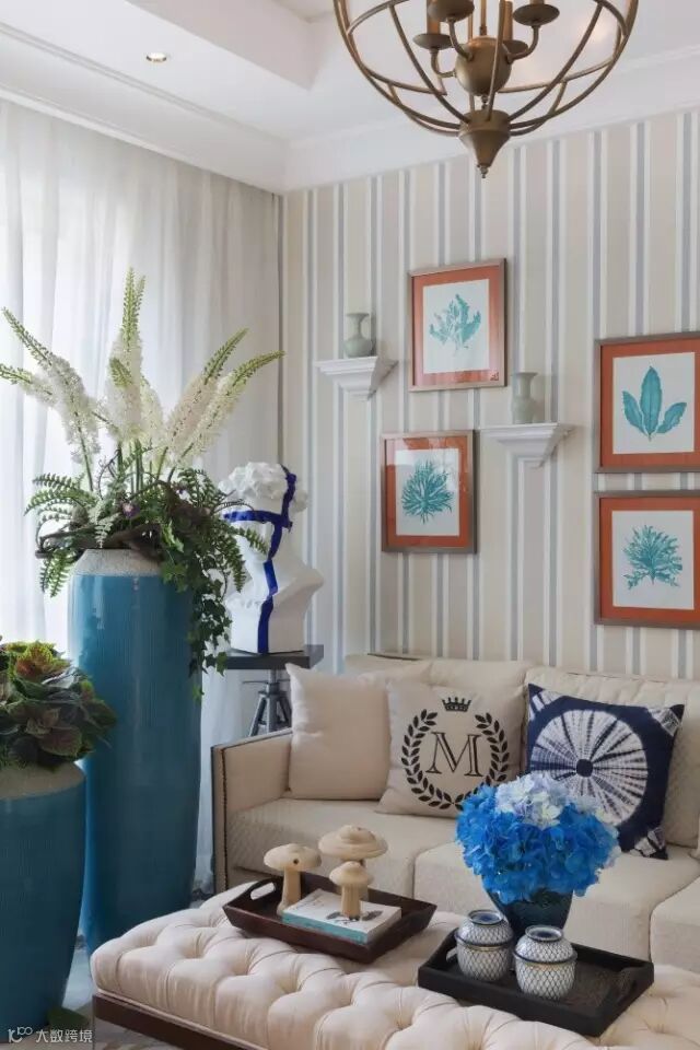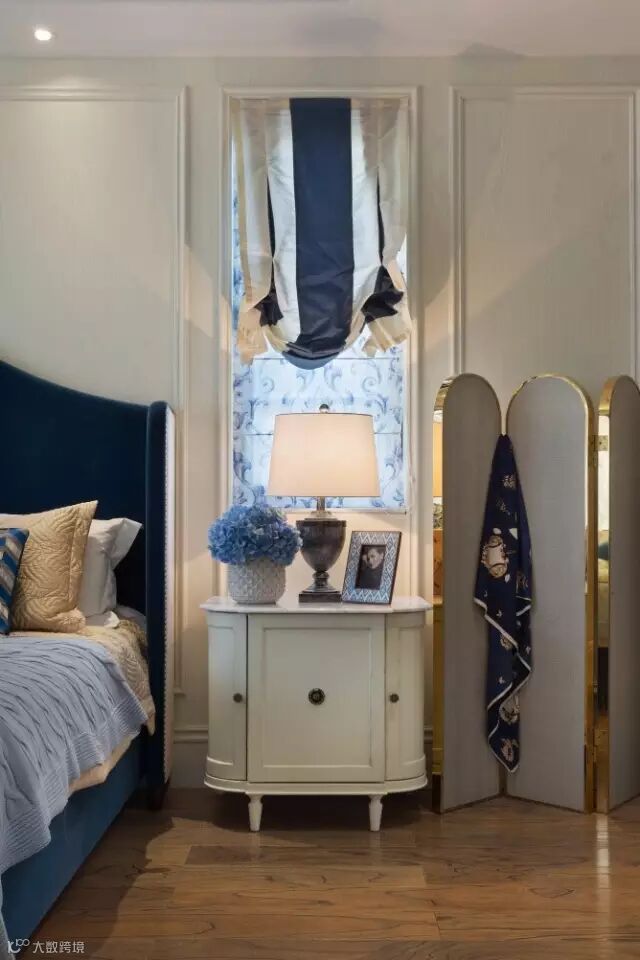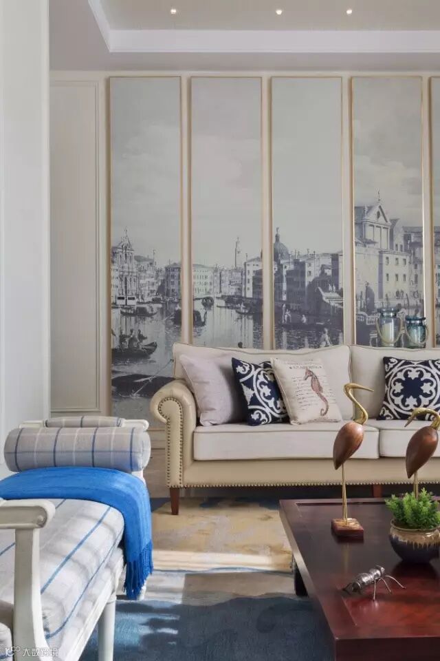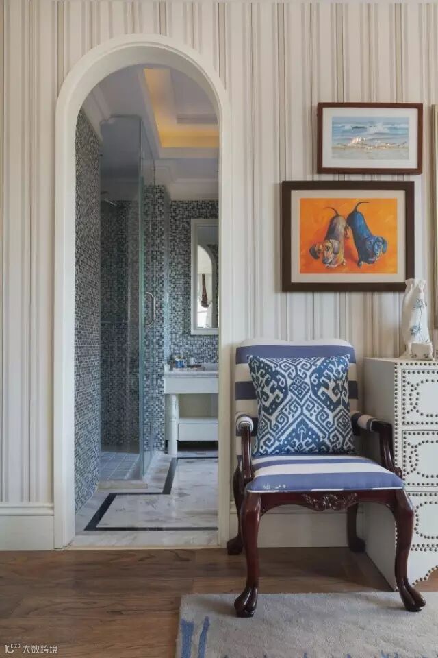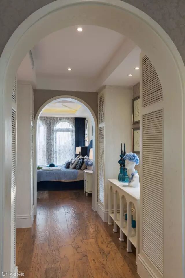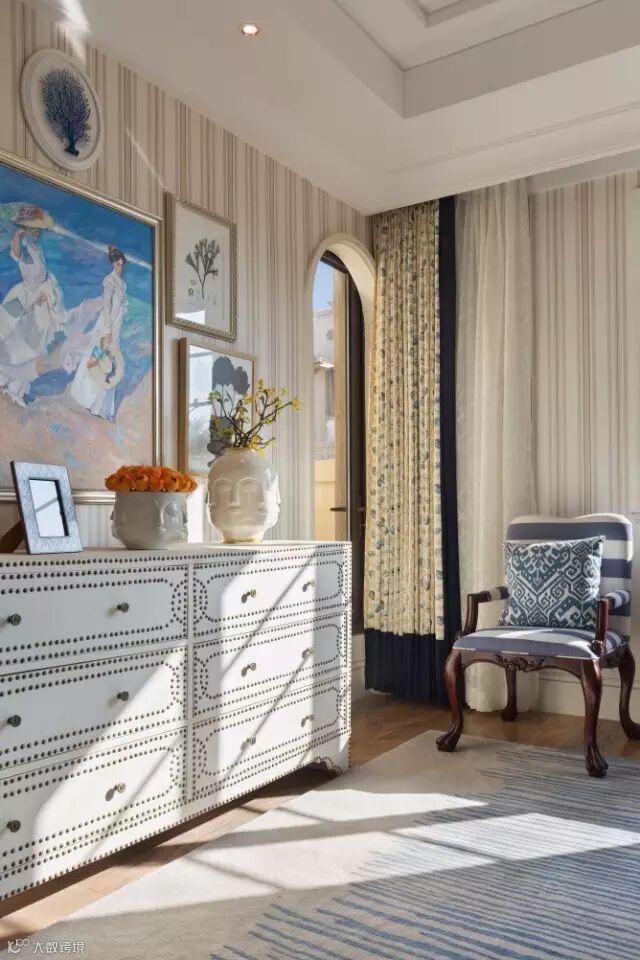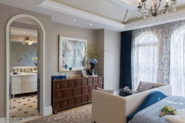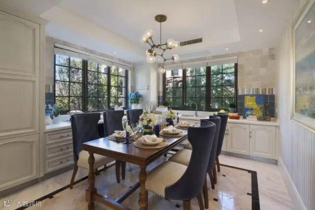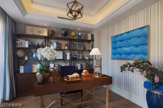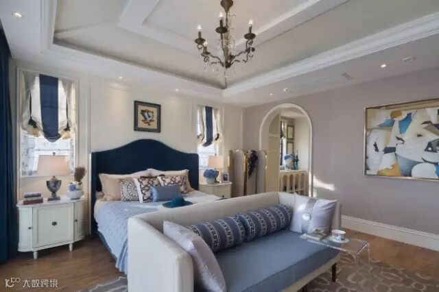 设计风格为清新地中海风格,在选材和配色上,都突显地中海那蔚蓝海岸与白色沙滩的主基调,不管是地面的灰白基调,墙面的蓝色基调,还是门套楼梯等白橡木开放漆的表达手法,都无不重复的突出地中海的祥和安逸的自然风情,作为边套户型,东侧增加出来的很多窗户,我们也通过装饰手法重点打造,将室外阳光引入室内,让地中海风格的美不光表现在与大海、蓝天、沙滩为伍,更有与光、与大自然融合的特殊风情,它的基调是明亮、热烈和丰富的色彩,外加显著的民族性、地域性特色的软装饰品,使得这套别墅的居住环境中充盈着蓝天、碧海、艳阳天的安宁静谧、自由自在。从而让业主在辛勤工作一天后,从进门的那一刻开始就能有归属感,舒适感,在享受舒适感的同时,又有碧海蓝天,白色沙滩的自然健康的感觉。