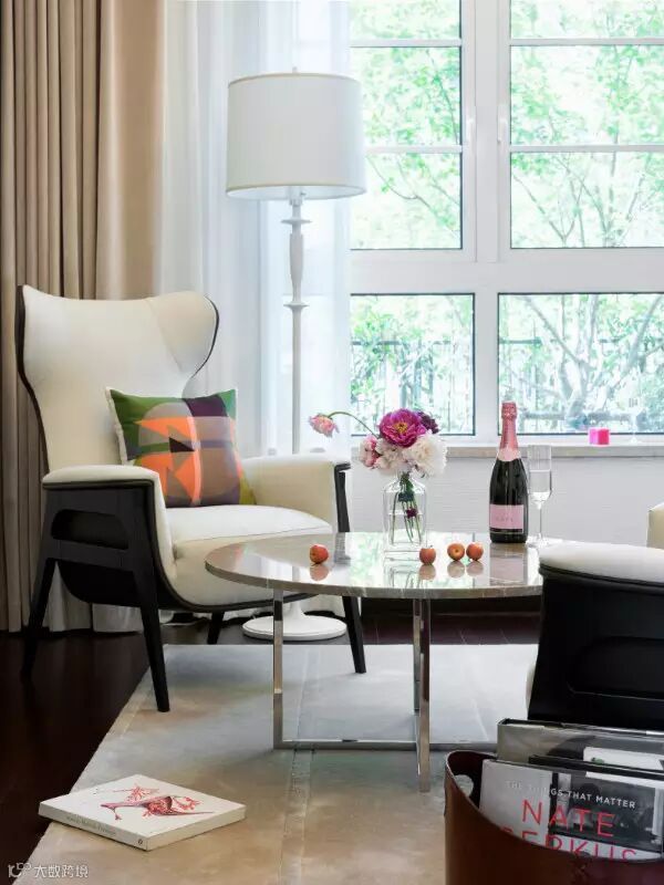 这是一个三层的联排别墅,建筑风格以法式为主,户型为一字型结构,四周环绕的绿化庭院,远处有湖景。为了营造建筑到室内一气呵成的延伸,在室内设计中,连自成将现代与古典融合后现代风定为设计的核心,并以此来贴合都市的生活节奏。