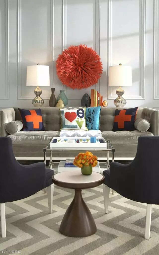 欧式的内装与现代风格的家具,混搭色彩鲜活的装饰品