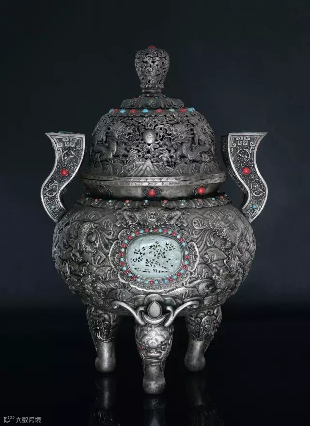 明宣德 银二龙戏珠大熏炉