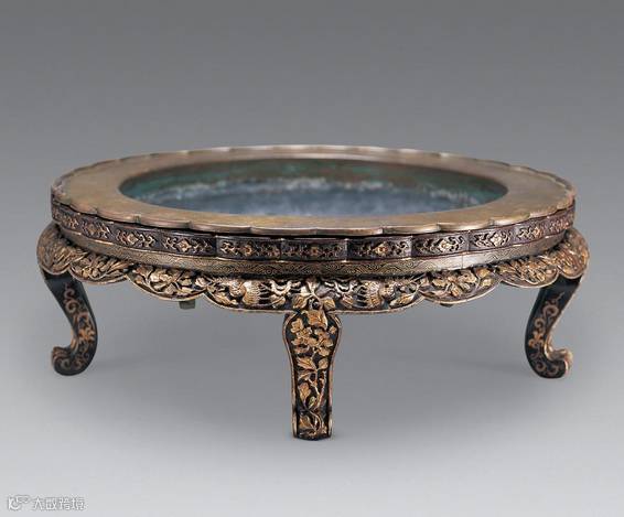 明 黑漆描金凤穿牡丹火盆架