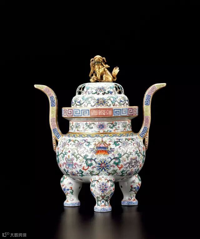 清乾隆 白地粉彩缠枝莲托八宝纹熏炉