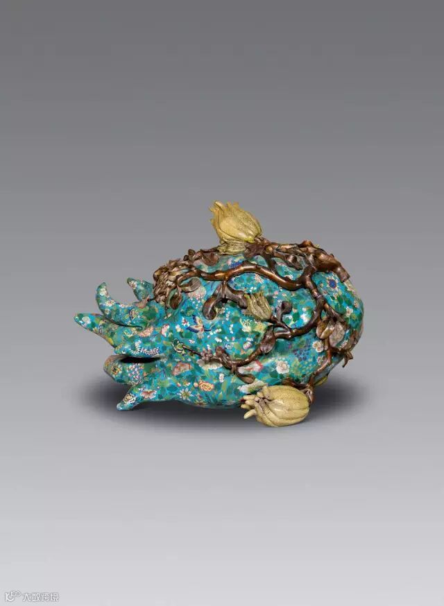 晚清 掐丝珐琅花卉纹佛手式熏炉