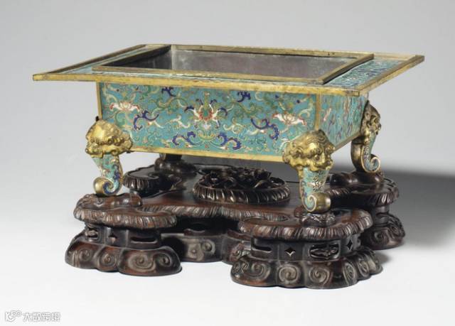 清乾隆 掐丝珐琅缠枝莲纹四兽足折沿方式火盆