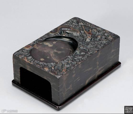 明 端石鹧鸪斑龙纹抄手砚