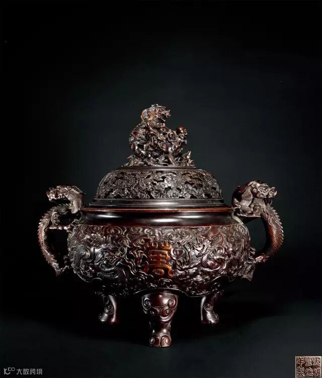 清康熙 铜鎏金万寿无疆龙耳熏炉