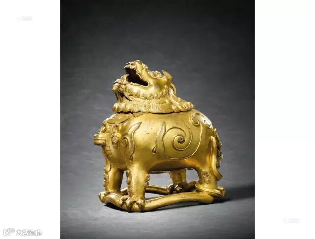 明宣德 铜鎏金甪端熏炉