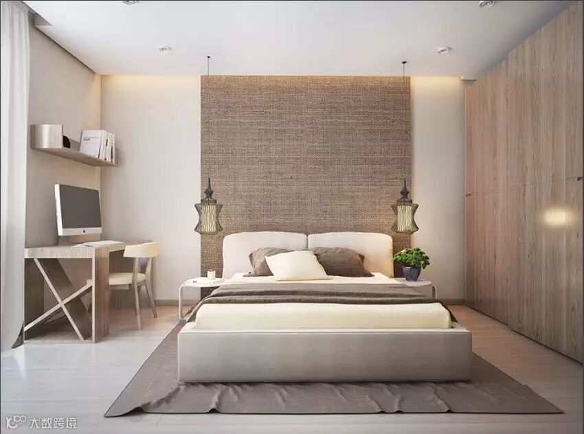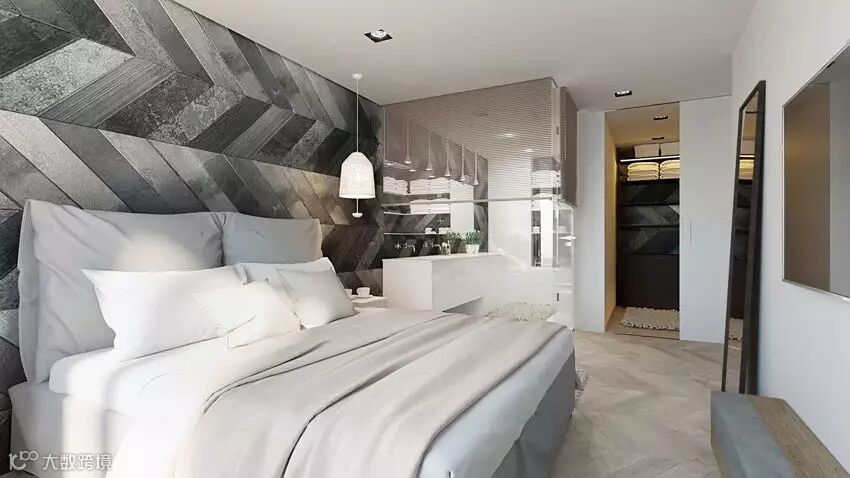 卧室背景墙用黑白灰的色调搭配几何造型
