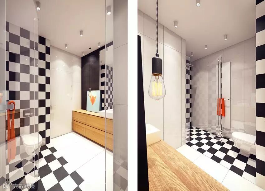 黑白拼砖的卫生间,简单又不失前卫
