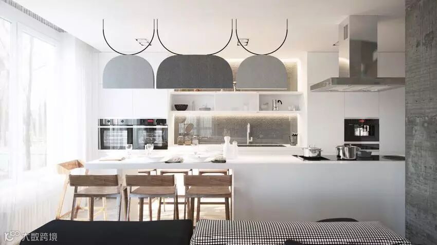 厨房以整体的白色为主