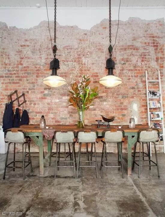 涂鸦黑板墙做背景,在工业Loft风格里最常见的手法。