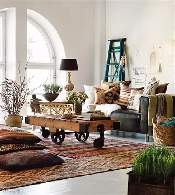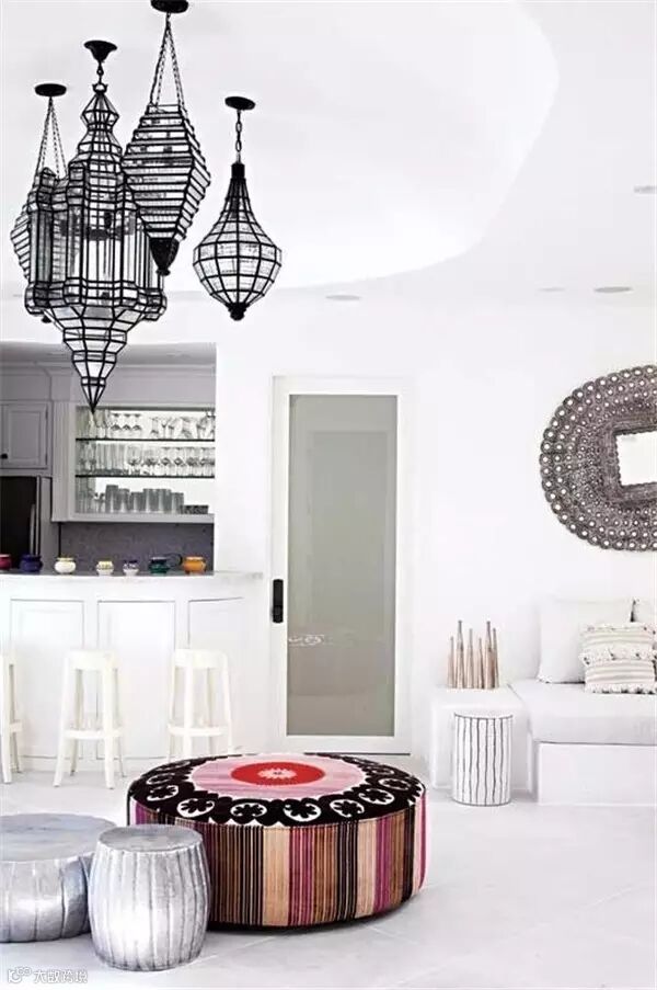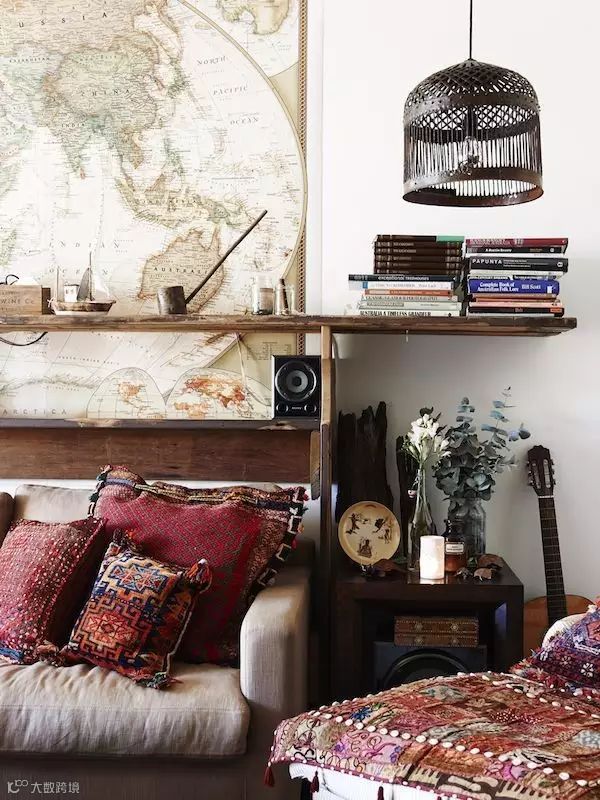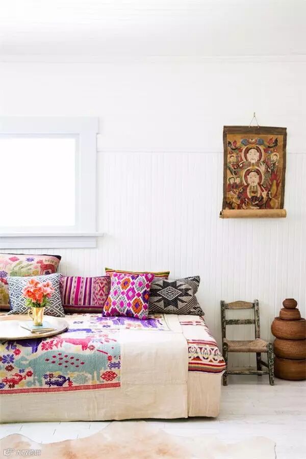 充满异国情调的民族风,不规格的图腾搭配大地色系的色彩,就像身处在热带岛屿的度假屋,而且简单的织品搭配和空间色彩就能瞬间转换家居风格。